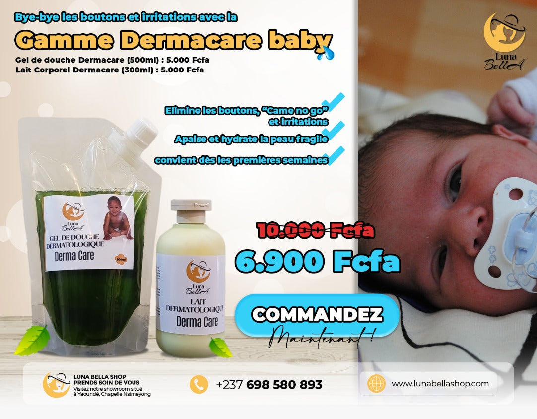 La Gamme Dermacare Baby associe un gel douche doux (500ml) et un lait corporel apaisant (300ml), spécialement formulés pour les peaux fragiles des tout-petits. Dès les premières semaines, elle aide à réduire boutons et irritations tout en hydratant intensément, offrant un soin expert qui respecte la sensibilité de la peau délicate.